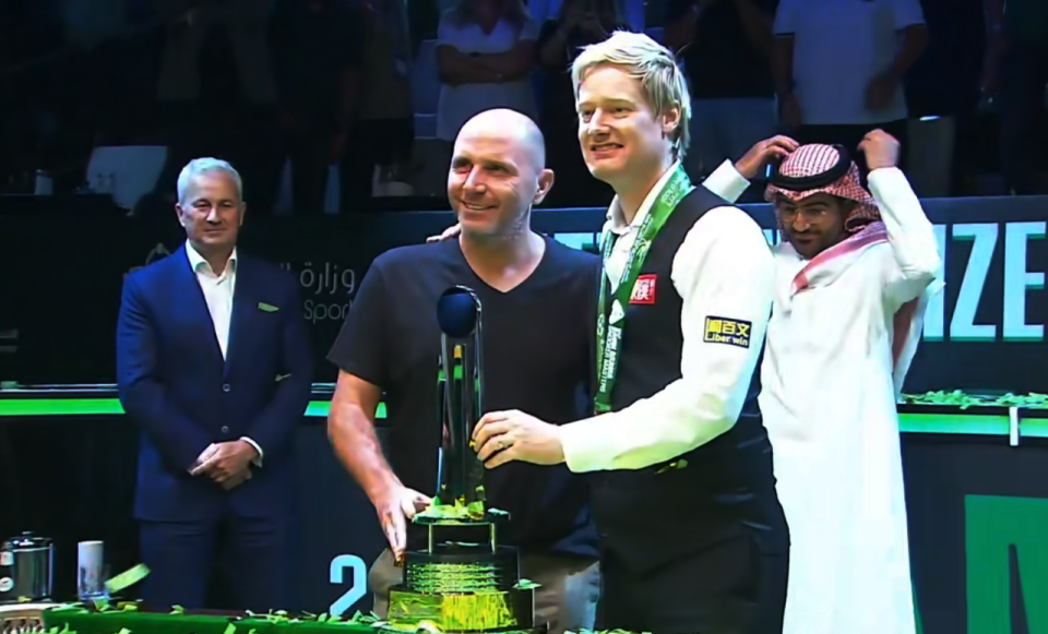 北京时间8月16日晚,2025年斯诺克沙特大师赛上演最后的决赛,火箭罗尼-奥沙利文对决澳洲火炮尼尔-罗伯逊。